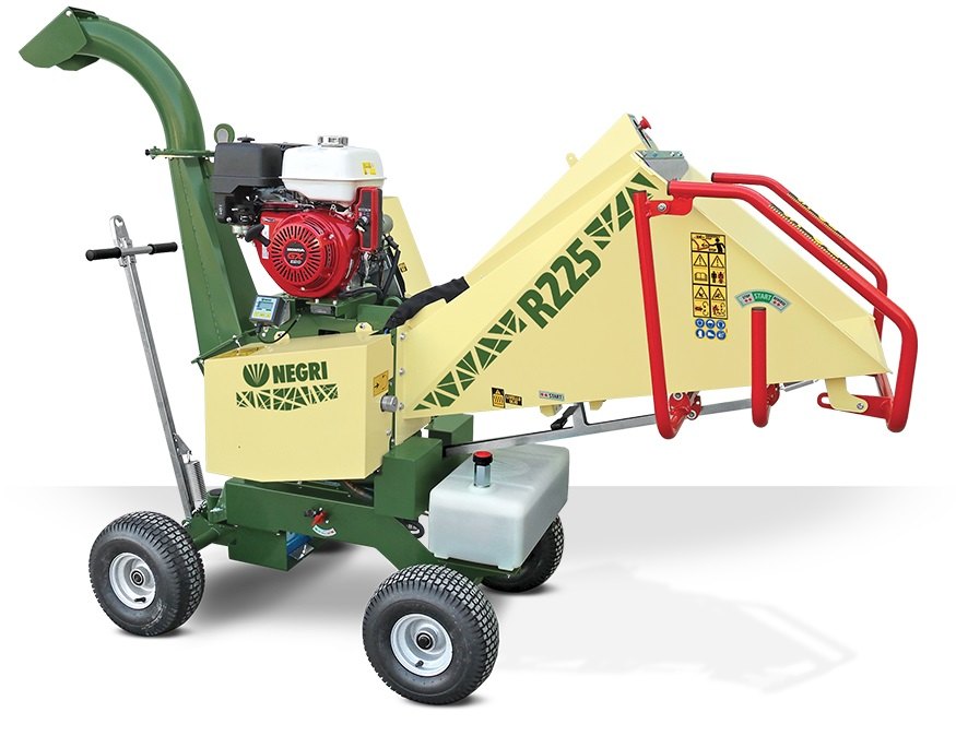 Profesionální benzínový drtič Negri bio R225BHHP13AEN, standardní podvozek s motorem Honda GX390 o výkonu 13 HP. Doporučený průměr drceného materiálu 90 mm.