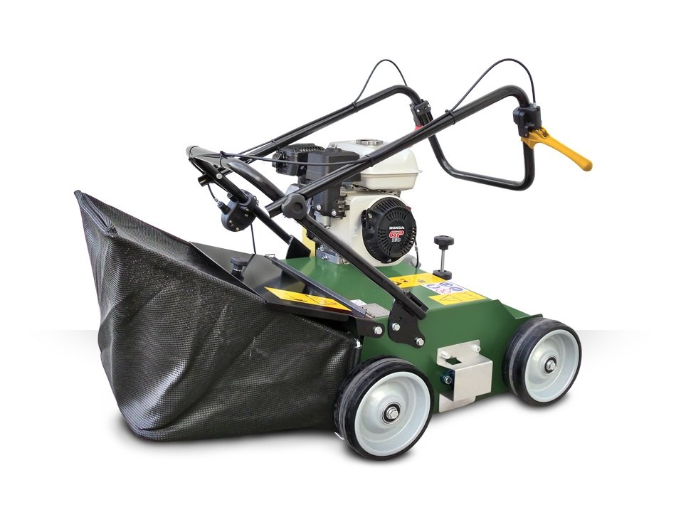Profesionální benzínový travní provzdušňovač Negri bio S45HGP55FI, pevné nože. S motorem Honda GP160 o výkonu 5,5 HP. Šířka záběru 45 cm. Hmotnost 75 kg.