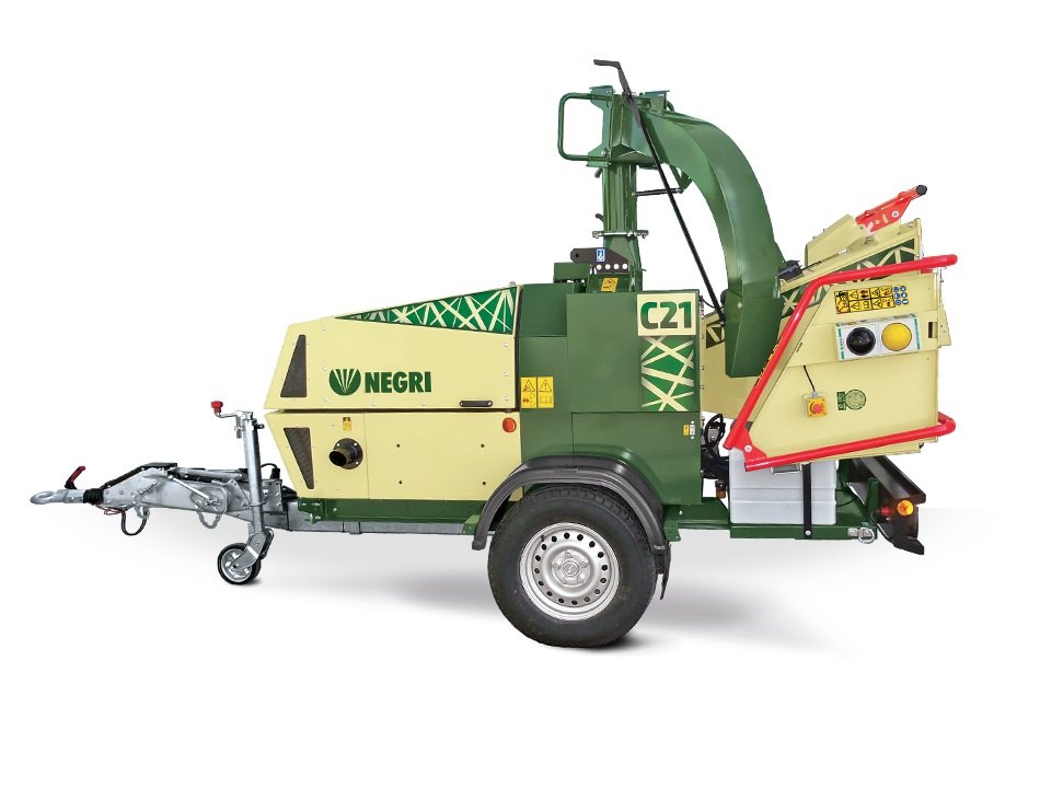 Profesionální naftový štěpkovač Negri bio C21DL56OTRON, silniční podvozek. S motorem Kohler KDI1903TCA o výkonu 56 HP. Doporučený průměr štěpkovaného materiálu 210 mm.